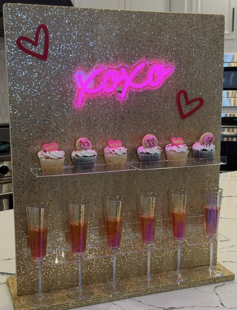 You can find big, over-the-top, fancy champagne walls all over TikTok and IG right now. They are essentially a large wall built from plywood or some other preferred type of wood that can hold filled champagne glasses at a party. And they are perfect for any type of party form wedding showers, to outdoor birthday parties. Basically any party where people may drink champagne.