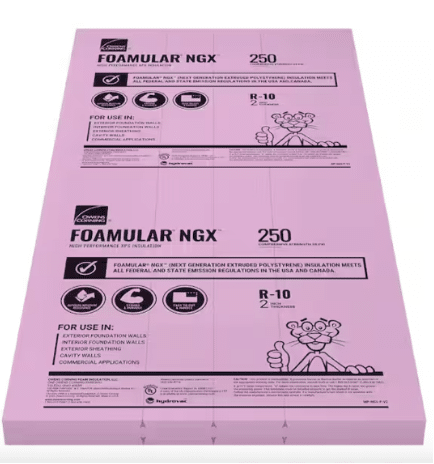 - Foamular – 1 – 4×8 sheet at 2 inch thick ($59) & 1 – 4×8 sheet at 1/2 inch thick ($22)
